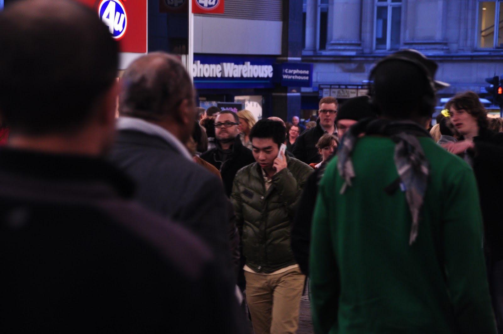 I like the idea of using my experience of how I felt when new to the city to influence my images. Not growing up in Manchester, I found it unbelievably noisy, busy and crowded. I wanted to take photographs of crowds as people walked past me.